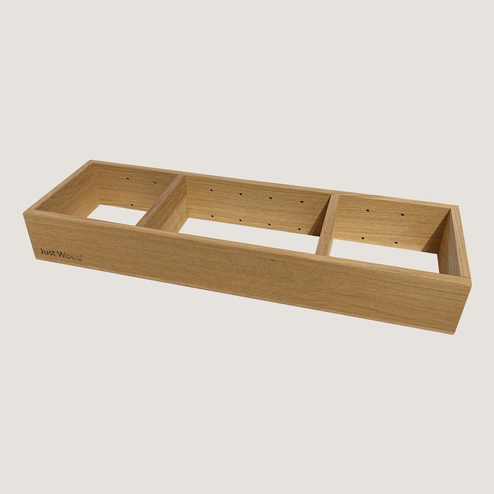 Skuffeinddeleren leveres færdigsamlet og kan med fordel bestilles sammen med dit Just Wood badmøbel for en gennemført og funktionel løsning.